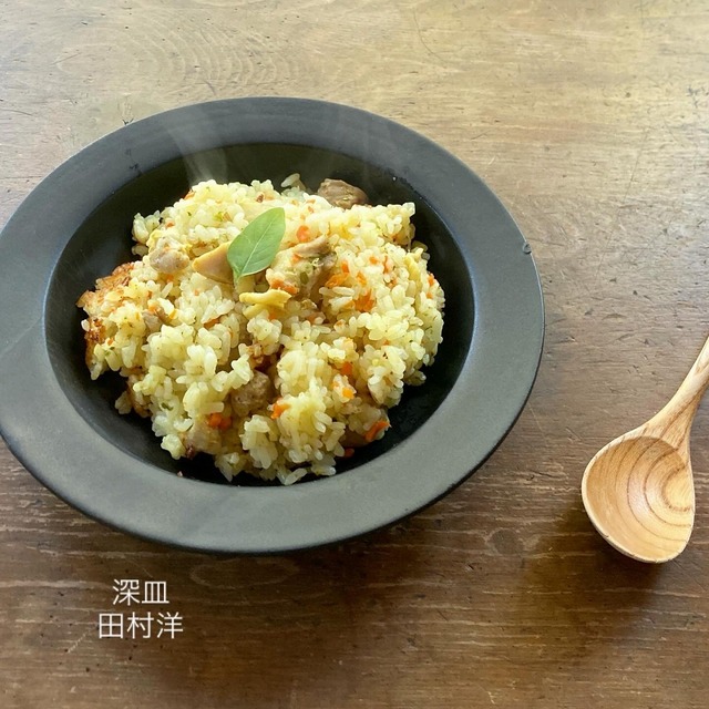 直径25.5 (内寸約20cm) × 高さ6.3㎝前後 ★以前入ったものより深くて大きめです。 リム付きのシンプルな深皿 カレーやパスタにおススメ。 サラダや煮物など盛り鉢としても。 おやつやフルーツをキレイに並べたり、どっさり入れたり。 気軽に使えます。 鈍い光沢のある黒。 釉薬の自然なムラがあります。 全体的にスベスベした質感。 ツブツブしていたりザラッとしたところもあります。 ★カタチ、色ムラなど個体差があります。お届けの際はおまかせとさせていただきます。 磁器なので陶器に比べたら丈夫です。 食洗機OK ←割れないわけではありません。ぶつからないよう注意してください。 田村洋(タムラヒロシ)さんのうつわは、カッコよくて実用的なところが魅力。 いつもの食事が、気負わないでもサマになるうつわ。 日常使いにおススメです。 *温め直し(2分程度)は電子レンジ OK *オーブン、直火 NG *ご使用後は十分に乾燥させてから収納してください。