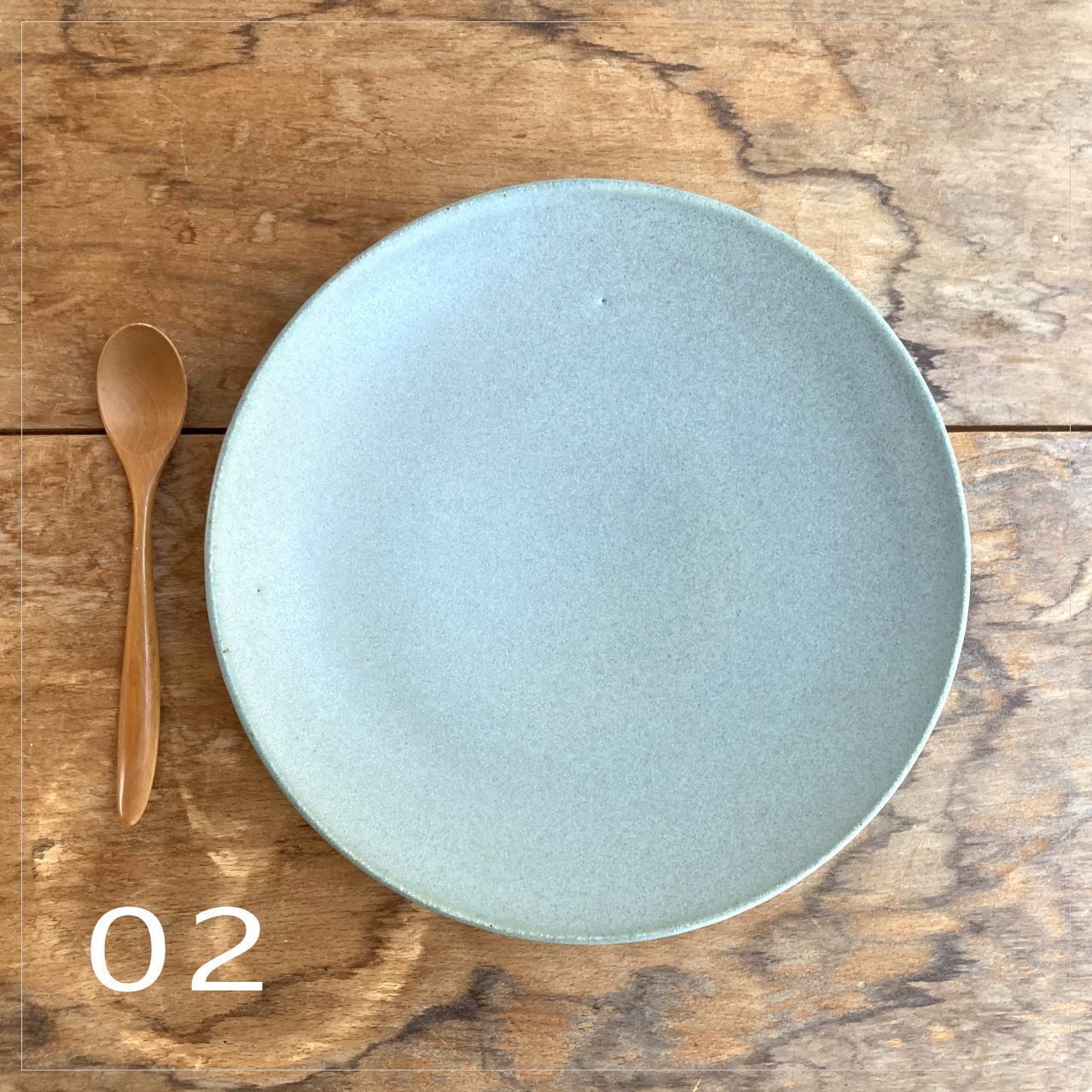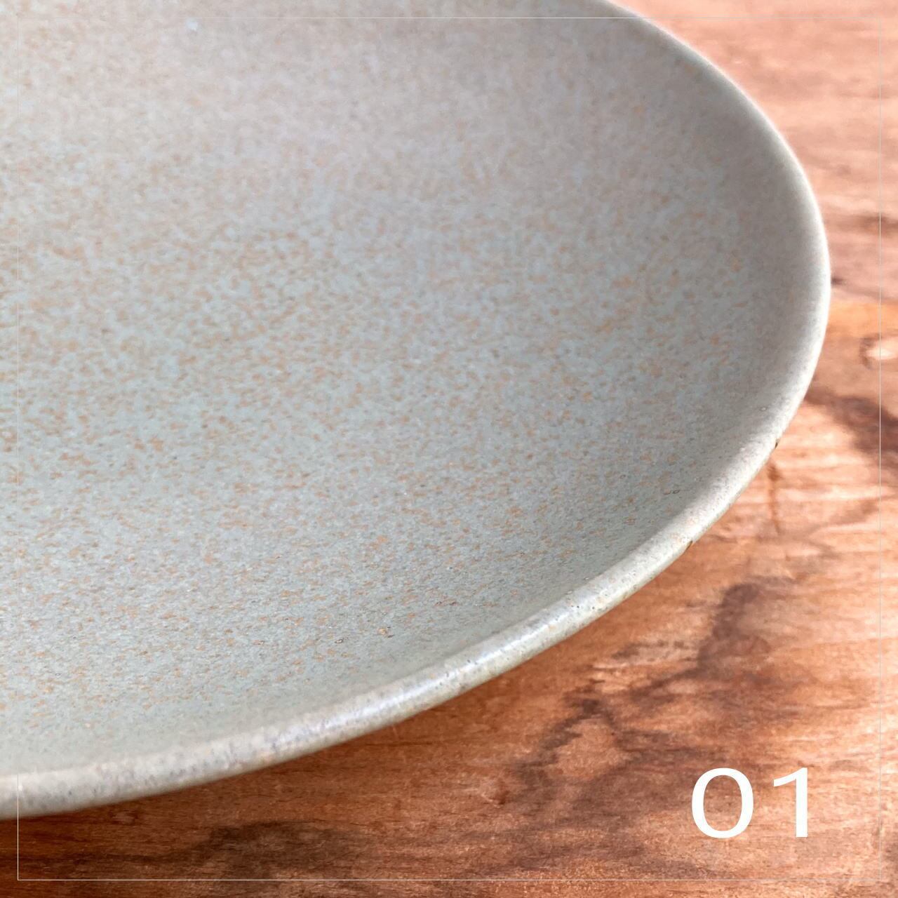01は淡くくすんだモスグリーン。窯変の薄茶色は金粉を蒔いたかのようです。
