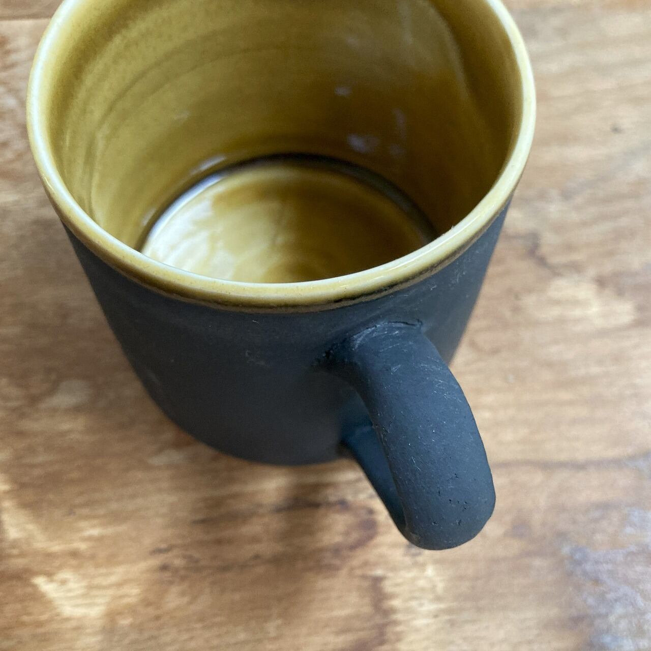 外側は鈍く光沢のある黒。内側は明るめのアメ色。