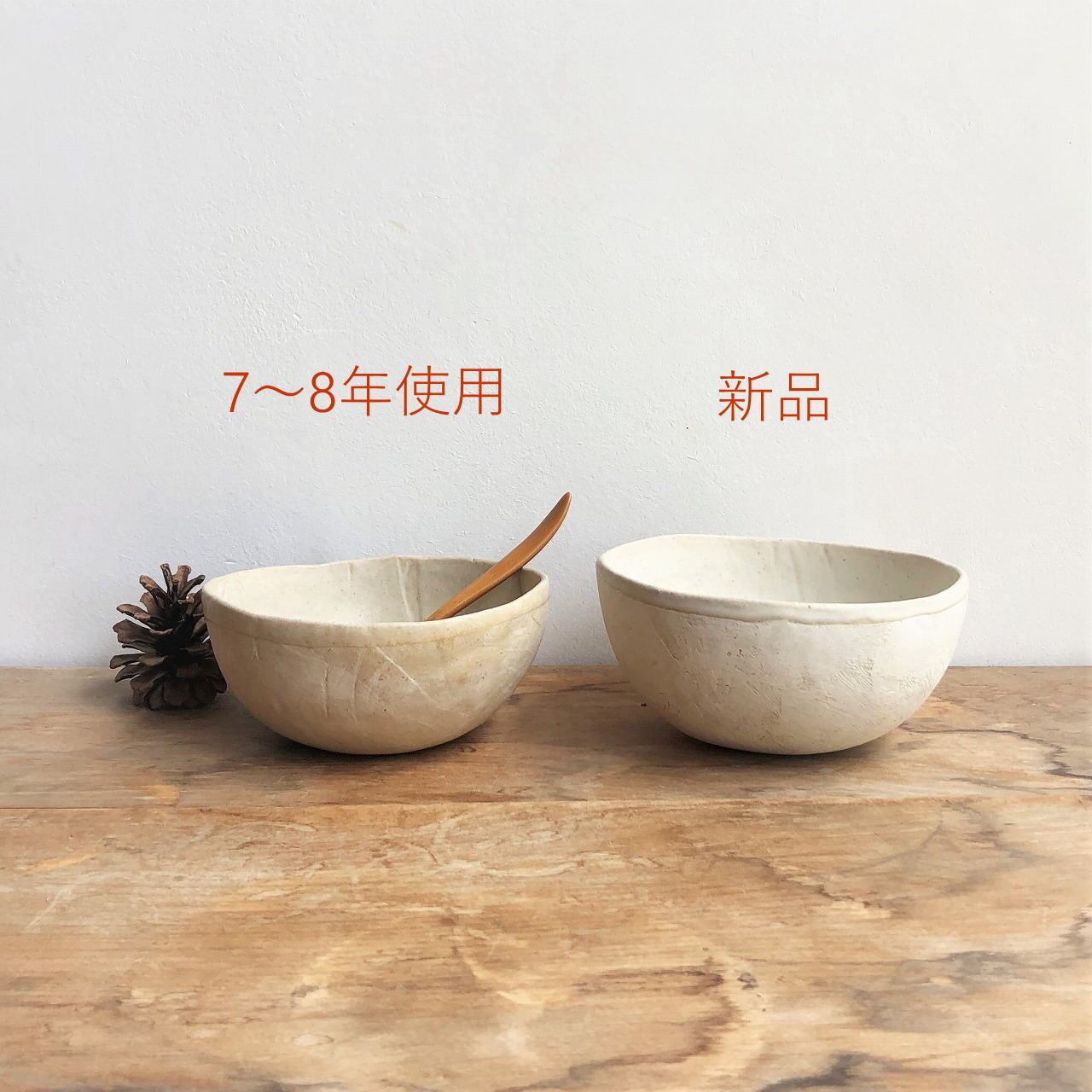 8年ほど使用したものの画像も入れました。真っ白ではなくなります。