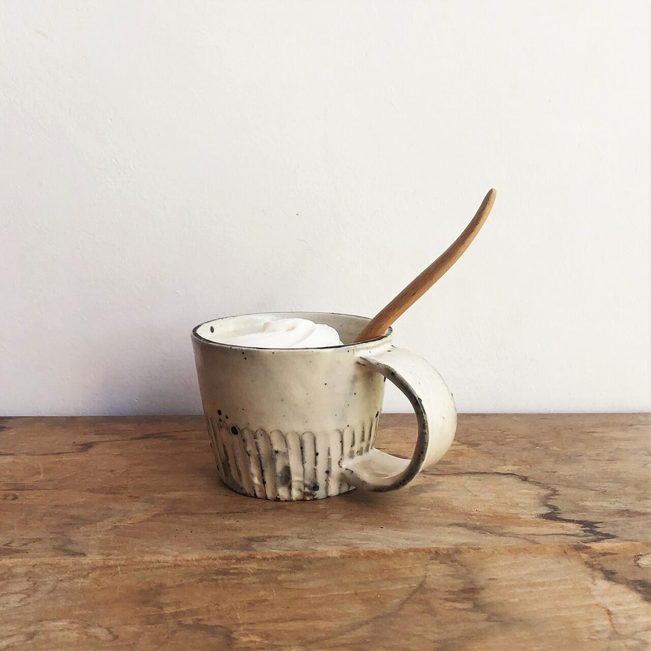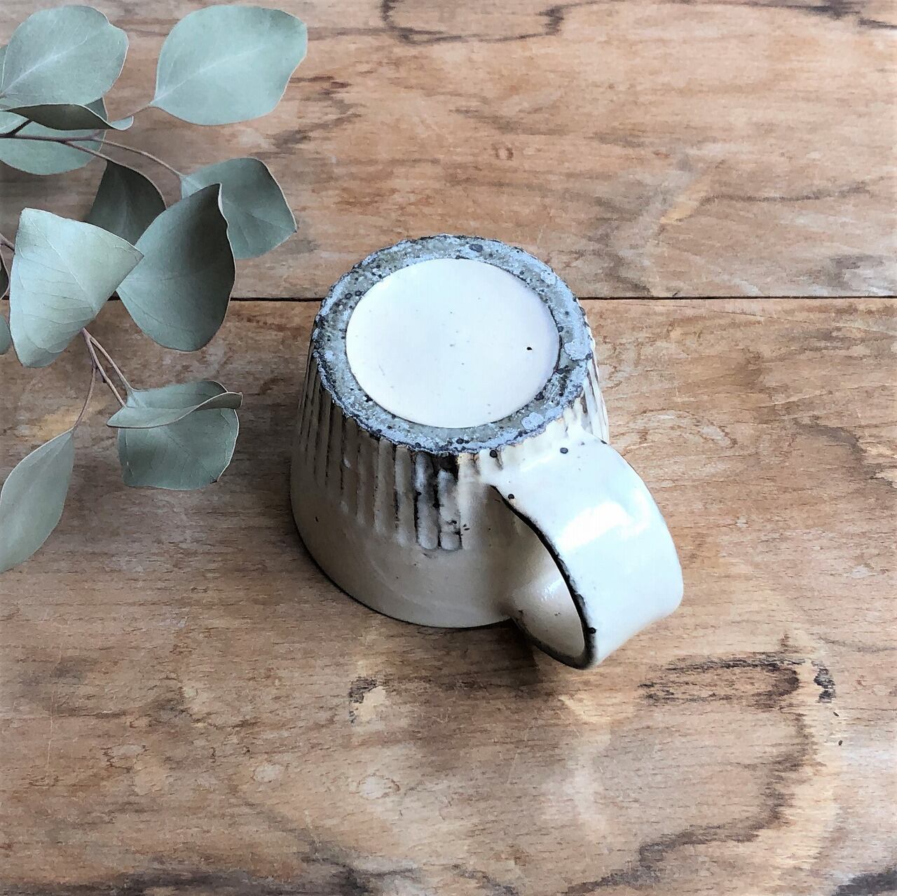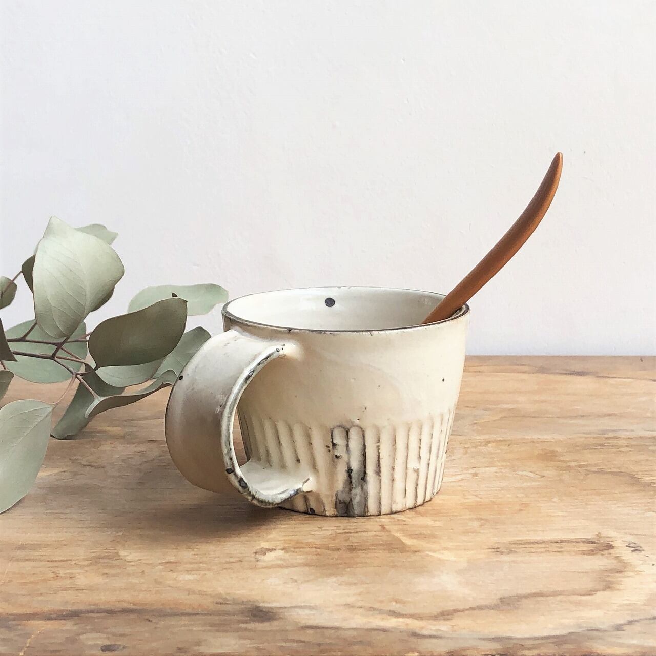 しのぎがカッコイイ、粉引のコーヒーカップ。